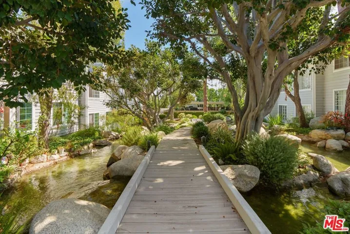 Welcome to Ponderosa Springs, a highly sought-after gated community known for its tranquil setting with meandering ponds, cascading waterfalls, and lush mature landscaping. The grounds feature resort-style amenities including three sparkling pools and four relaxing spas, all nestled among serene garden pathways. Over the years, the community has undergone extensive renovations, enhancing both its beauty and livability. This upper-level residence is filled with natural light and features soaring vaulted ceilings, a spacious living and dining area, decorative fireplace, and private balcony overlooking the peaceful surroundings. The primary suite offers a large walk-in closet with built-in organizers and an en-suite bath, while the secondary bedroom is conveniently located across from the guest bath. Additional highlights include a carpeted bonus space above the kitchen -approximately 150 sq. ft. – that can serve as a loft or creative retreat, in-unit laundry room with cabinetry, exterior balcony storage, and two tandem covered parking spaces within the gated garage, plus ample guest and street parking. Centrally located, Ponderosa Springs is minutes from the Terraces Shopping Center, Trader Joe’s, Target, restaurants, schools, and a movie theater. Outdoor enthusiasts will also enjoy the nearby Ken Malloy Harbor Regional Park, offering trails, fitness zones, campgrounds, and a fishing lake with piers.