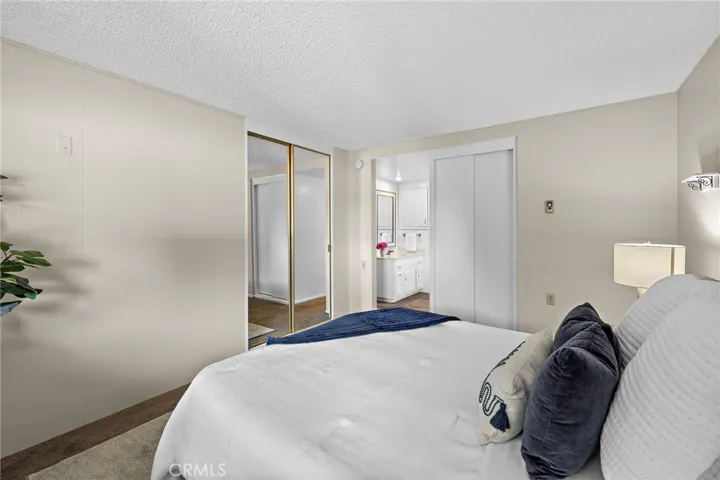 The kitchen and living area were taken down to the studs and reimagined with high-end finishes, including quartz countertops, an oversized island with deep storage drawers, wide-plank luxury vinyl flooring, and recessed lighting. Double-pane windows and custom luxury shades enhance comfort and style across the entire home. Enjoy the best of California living with an expansive private balcony off the living room—perfect for morning coffee or evening gatherings.