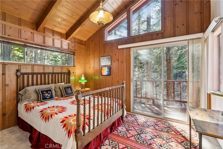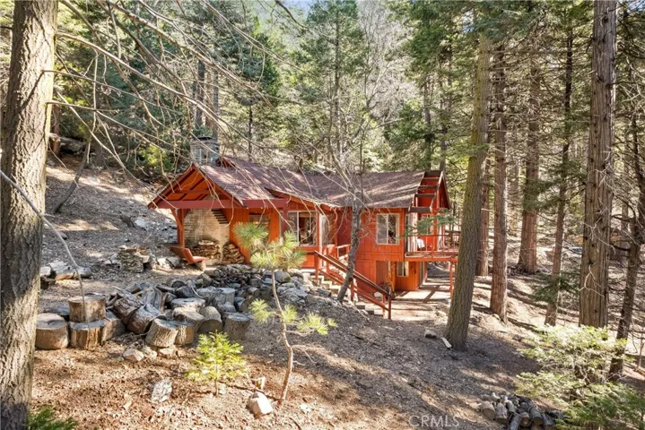 MAJOR PRICE REDUCTION!!! Tucked away in the highly coveted, gated community of Dogwood Blue Jay Canyon, this 3BR/2BA stunning vintage cabin sums up the quintessential cabin dream. Surrounded by towering redwoods and pines, it’s hard to see your neighbors’ houses which is VERY RARE in the Lake Arrowhead area, giving you total seclusion. Open the front door to find a large, flat area, with unobstructed views of the woods, exactly what you dream a cabin in the woods should be. Open, exposed beamed ceilings in every room upstairs, wood paneled walls, wood burning brick fireplace, retro style refrigerator and Cove dishwasher (Sub-Zero brand). Truly ideal location, not only does it feel secluded, but you happen to be walking distance to the town of Blue Jay (6-7 minute walk to Jensen’s, banks, post office, shops, restaurants, Starbucks), you wouldn’t even need to drive your car during your getaways. Seasonal running creek right outside the cabin provides the perfectly relaxing background sounds, not to mention so much fun to walk along and explore. The area is rare with a HOA that has its own wells and water system. 160 acres of green belt meanders around each property, providing a private forest feeling. HOA fees include trash services, water from the community’s private wells, road maintenance, along with access to the 160 acres of private hiking trails. Community actively working on getting group insurance discount. Oversized driveway can accommodate several vehicles. MUST SEE!!