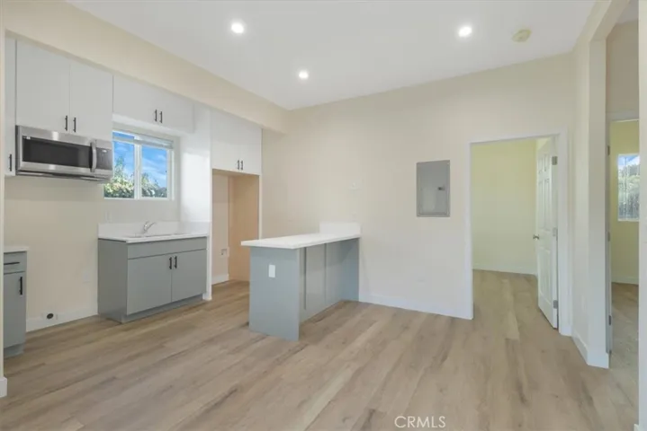 What could be more valuable than finding not just one, but two beautifully updated homes on a triangular lot in one of LA’s most culturally rich communities? Set in the Historic South-Central neighborhood, this rare opportunity includes two detached 3-bedroom, 1-bath residences—each with its own driveway, elevated front porch, and distinct interior layout. Immaculate turf creates a polished look behind secure gates, offering peace of mind and low-maintenance curb appeal. Inside, both dwellings feature tall ceilings, wood-style flooring, and open-concept living areas filled with natural light. The eat-in kitchens are designed for both function and flair, with recessed lighting, ample cabinetry, and built-in microwaves—plus, one offers a multi-seater breakfast bar that adds the ideal spot for casual meals or working remotely. Well-sized bedrooms include bright windows and deep closets, while each full bath blends modern elegance with everyday comfort—one comes with a sleek walk-in shower, the other contains a shower/tub combo to suit every preference. Venture out back to a private, shared yard complete with redwood groundcover and a concrete patio ready for intimate weekend grilling or relaxing under the stars. Enjoy pleasant temperatures year-round with the included mini-split AC units. One of your abodes even features attic storage, providing added flexibility without sacrificing domestic space. Perfectly positioned near iconic landmarks like USC and Exposition Park, you’ll also have quick access to the 10 and 110 Frwys, local schools, shopping, and downtown LA’s energetic scene. Whether looking for multi-generational living, effortless commuting, or income potential, this is more than just a property—it creates options for the lifestyle you’ve been waiting to shape!