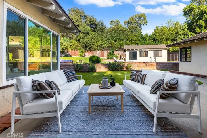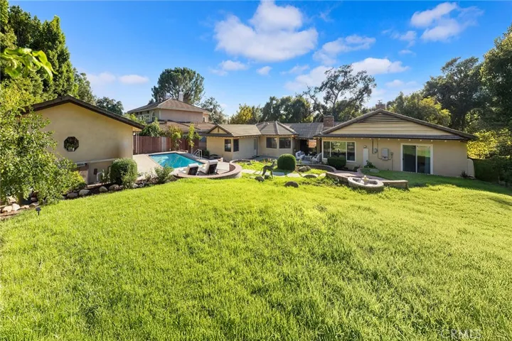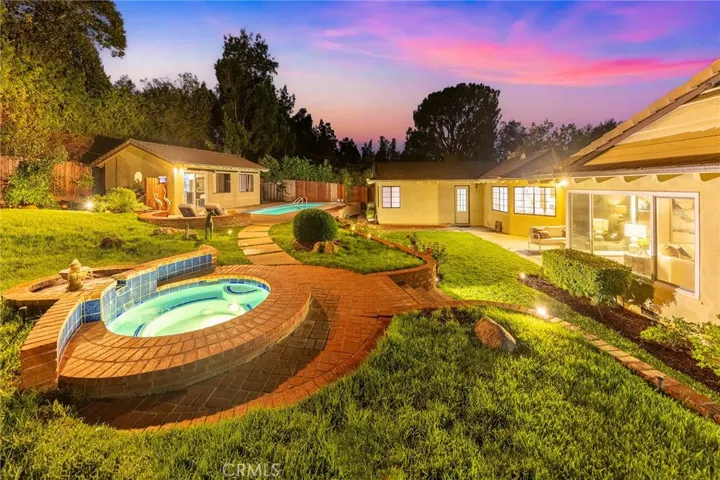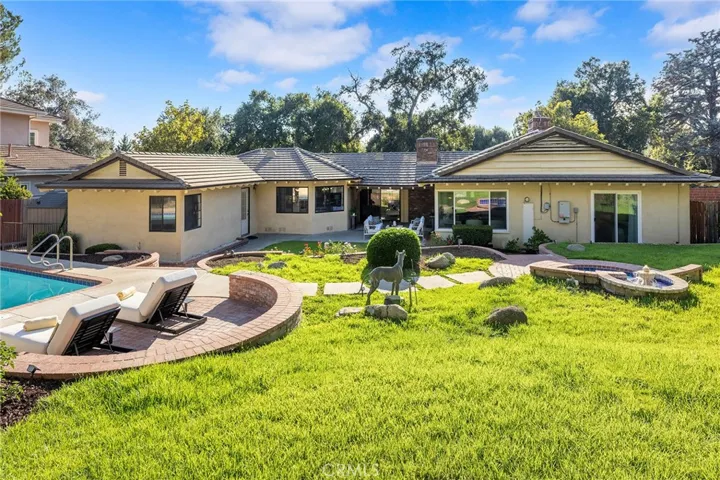 Step outside to a resort-style backyard with a covered patio, sparkling pool and spa, lush landscaping, and fruit trees—an entertainer’s dream.