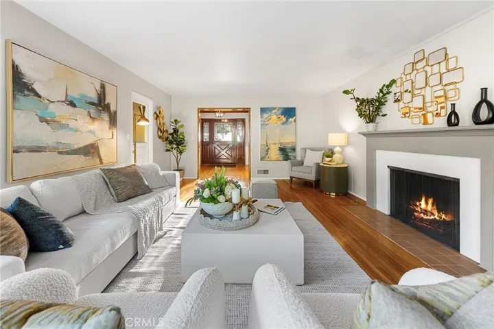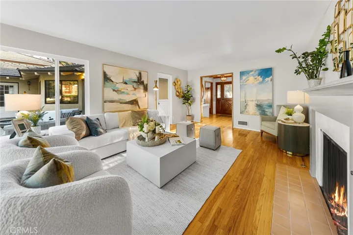 The main house features 4 bedrooms and 4 bathrooms, including a spacious primary suite with dual vanities, spa tub, and stall shower. Expansive living and family rooms, each with hardwood floors, cozy fireplaces, and direct access to the backyard, create inviting spaces for entertaining and everyday living. The guest house includes 1 bedroom, 1 bathroom, and a kitchenette—ideal for visitors, extended family, or a private office.