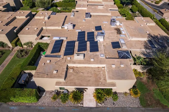 Price Improvement to be the deal of the mid century!!!! This stunning, light filled condo available at the highly desirable Tamarisk Gardens is waiting for you! 1 of only 28 condominium homes, built in 1966 and designed by architects McCarthy and Hartfelder, it is located adjacent to and steps away from the Tamarisk Country Club. The open, light filled floor plan consists of a large living room with a 2-way gas fireplace, and formal dining area which opens to a private patio. The updated chef’s kitchen includes top-of-the-line Wolf, SubZero and Bosch appliances. There is an informal dining area off the kitchen as well as a breakfast bar to allow for plenty of entertaining. There are two main suites, each with a generous walk-in closet, plus a large den/office. Each of the two baths have been updated. The home opens onto private, south facing patio with mountain views and has loveling evening lighting. The home also offers plenty of upgraded interior lighting and ceiling fixtures to create the perfect mood for evening entertainment. There is also leased solar with favorable rates, and electric window coverings. Assigned carport and an additional dedicated parking space is included. The grounds are impeccably maintained, with a community pool and spa which are steps from this home. Some of the furniture could available outside of escrow. Buyers and their agents are to conduct thorough investigates regarding the property and verify any information regarding this property.