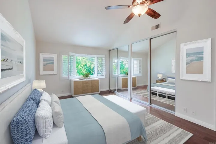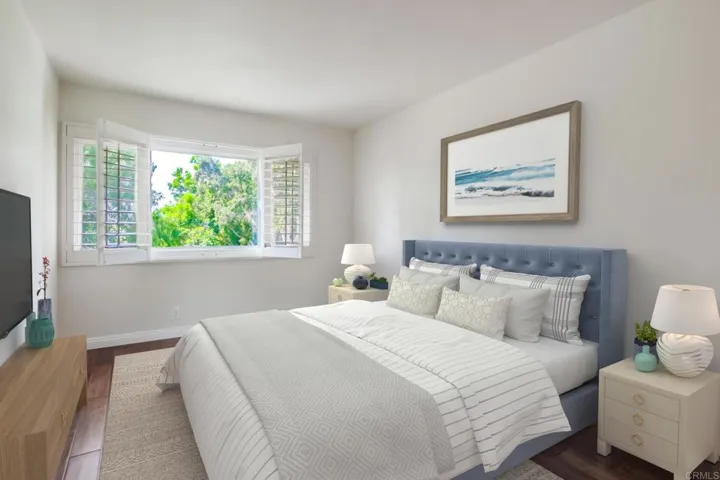 MODEL, PERFECT, AND MOVE-IN READY! Welcome to 8037 Caminito Mallorca, a beautiful turnkey townhome nestled in the highly desirable La Jolla Village Southpointe Community. This elegant residence offers 3 bedrooms, 2.5 bathrooms, and 1,467 square feet of thoughtfully updated living space designed for comfortable coastal living. Light, bright and drop dead, gorgeous! Granite kitchen, wood-burning fireplace, plantation shutters, rich wood flooring, newer energy efficient dual pane windows, upgraded baths and a large private patio that opens onto a SPACIOUS GREEN BELT, one of the few units that has no one behind the home! In addition, this townhome is located on a cul-de-sac! Enjoy lovely views from the second level and cool ocean breezes! Primary suite also has vaulted ceilings and a lovely ceiling fan! The beautiful Kitchen has granite countertops, new/newer appliances and recessed lighting. Throughout the upstairs, you will find rich hardwood flooring, newer mirrored closet doors in two of the rooms and a spacious walk-in closet in the third. Walk/bike to nearby large park, upscale markets, restaurants, shops, pharmacies and renowned UCSD! Minutes to Torrey Pines Golf Course and the pristine beaches of La Jolla! Centrally located with easy access to freeways. The attached two-car garage includes a recently installed A/C-ready furnace and convenient in-unit laundry with washer and dryer included. The community offers exceptional resort style living with three wonderful pools, spas and walking paths, all within close walking distance! Come see all this wonderful Townhome and neighborhood has to offer!