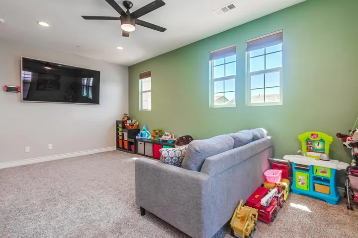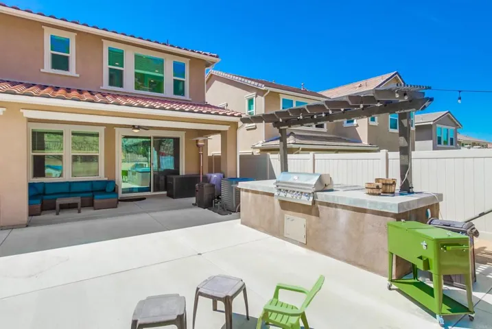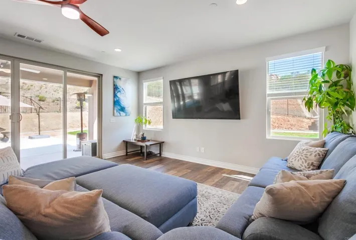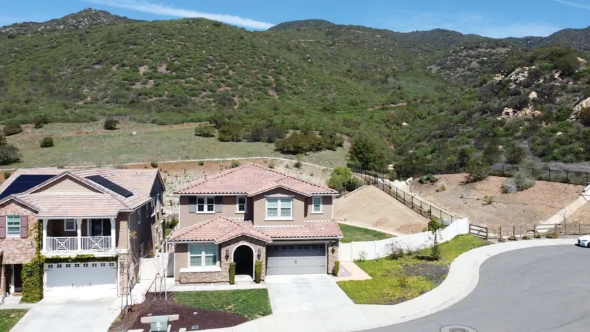 Presenting a HOME and a neighborhood for the whole family! FULLY PAID solar! Double LOT! Direct bath access from every bedroom! HUGE garage! NO neighbors behind! No matter what your favorite activities are, the good life begins in this beautiful 3,373 sqft. 4 bed/3.5 baths home with fully paid solar situated on a double lot (appx. 1/4 Acre) in the beautiful and active Promontory at Horse Creek Ridge as the last home at the top end of a double cul-de-sac street. The expansive lot provides room to build a pool and still have a backyard. Beat your coworkers home with an improved commute, park dirtbikes in the 3-car tandem garage, walk directly to hiking trails, create culinary masterpieces in the spacious kitchen or built-in backyard BBQ, or just step out to your California Room to enjoy a glass of wine as the Fallbrook sky is painted with pink hues of sunset over the picturesque hills with no neighbors behind you. The heart of this home is the great room with spacious kitchen cabinetry (including a huge walk-in pantry) and family room, double and single sliding glass doors to provide warm-tone sunlight and connect you with the California Room; backyard, dramatic center continent with seating for 5 and topped with the most beautiful granite slab you’ve ever seen. The luxurious primary suite features a designer’s dream bathroom with expert tile work throughout, walk-in shower (tiled floor to ceiling), soaking tub, separate vanities, and a 2-door passthrough closet that will accommodate any wardrobe. 2 upstairs secondary bedrooms are separated by a jack-n-jill bathroom. The downstairs guest suite provides total privacy, nicely separated from the 3 bedrooms and bonus room (which could easily be converted to a 5th bedroom) upstairs. An open office downstairs could have unlimited uses. The whole house fan helps to keep your home cool in the summer. The commuter-friendly location provides quick access to both the 15 and 76. Jump off the freeway in the afternoon right before the daily commute does its worst to your nerves heading into South Riverside County. Enjoy the efficiency, luxury and convenience of a newer home without the inconvenience and expense of installing window treatments or having your backyard landscape designed and executed in this spacious and gorgeous home for the whole family. Other home features that you’ll love: Dramatic high ceilings; Wide hallways; Downstairs office (could be converted to 5th bed/expanded guest suite); Tandem 3-car garage; Fully paid solar; Downstairs guest suite; Enormous upstairs bonus room and laundry; Wood grain LVP flooring with 5.5-inch baseboards; Low-maintenance landscaping; Built-in BBQ; Expansive back patio; Abundant storage spaces; Whole-house fan; In-wall pest control system.