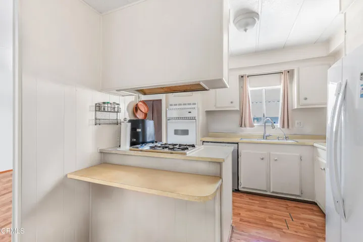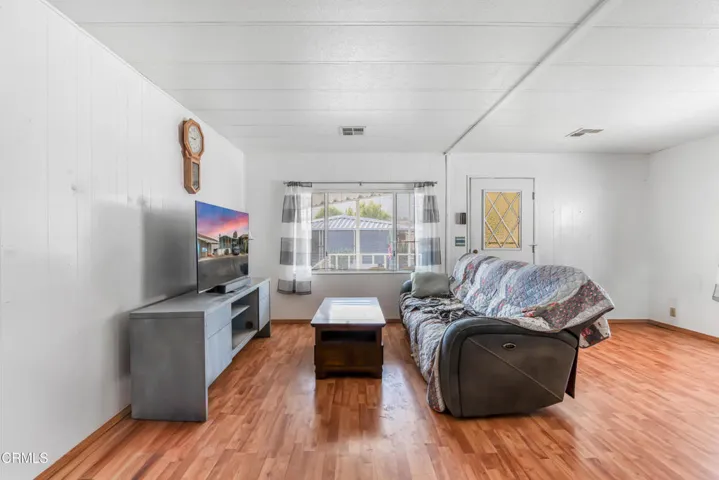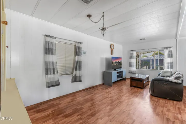 Welcome to this charming and well-maintained 2-bedroom, 2-bathroom manufactured home located in a quiet, friendly park community. This home features a bright and open-concept layout that seamlessly connects the living room, dining area, and kitchen–perfect for both relaxing and entertaining.Step into the spacious living room filled with natural light from large windows, and enjoy laminate flooring throughout the main living areas for easy maintenance. The kitchen offers gas appliances, an eat-in breakfast bar, and plenty of cabinetry for storage. Adjacent to the kitchen, the laundry room provides added convenience.Both bedrooms are comfortably sized and feature wall-to-wall carpeting, with the primary bedroom including an en-suite bathroom for added privacy.Outside, enjoy the comfort of a covered patio–great for outdoor dining or lounging–as well as two carport spaces for parking.This move-in-ready home offers comfort, functionality, and affordability in a welcoming park setting. Don’t miss out on this great opportunity!