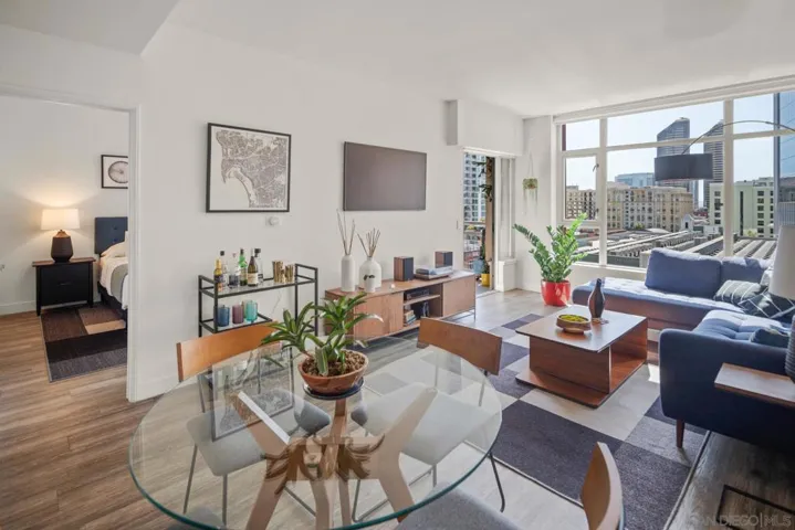 Modern, bright and meticulously maintained 1-bedroom condo with balcony at Diamond Park Terrace, located in the heart of East Village, with amazing views into Petco Park. Move-in ready and offered turn-key, this stylish home presents a bright open floor plan with wood flooring, a beautifully updated kitchen featuring ample cabinetry, counter space, and stainless appliances. The spacious bedroom showcases downtown views, a walk-in closet with custom shelving, and a roomy bath with dual access. The home also features an art frame TV and an in-wall safe for added security and convenience. Enjoy one secure gated parking space plus a separate storage unit. Community amenities include a rooftop terrace with spectacular views into Petco Park’s “Baseball Diamond,” fitness center, lounge, and BBQ areas. Live steps from Petco Park, the Harbor and Marina, the Gaslamp Quarter, Little Italy, and world-class dining, shopping, and entertainment. A unique opportunity to own a turn-key property in a prime location.