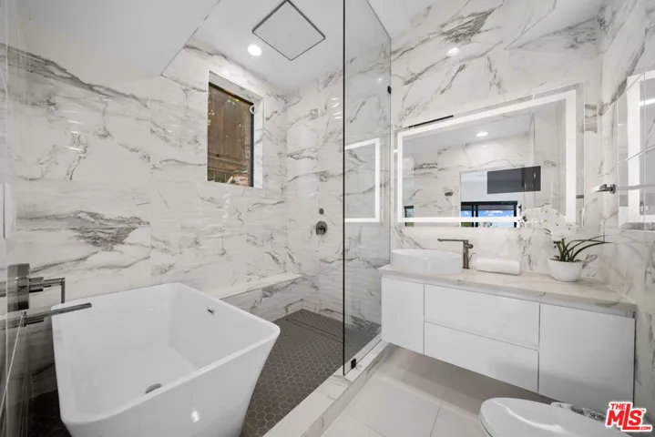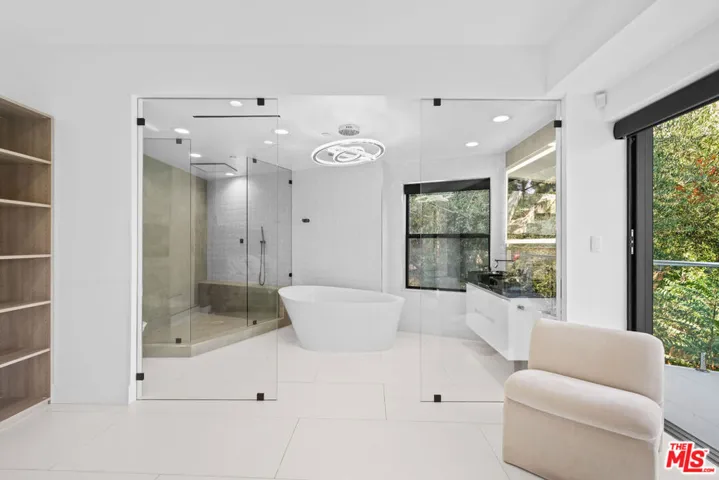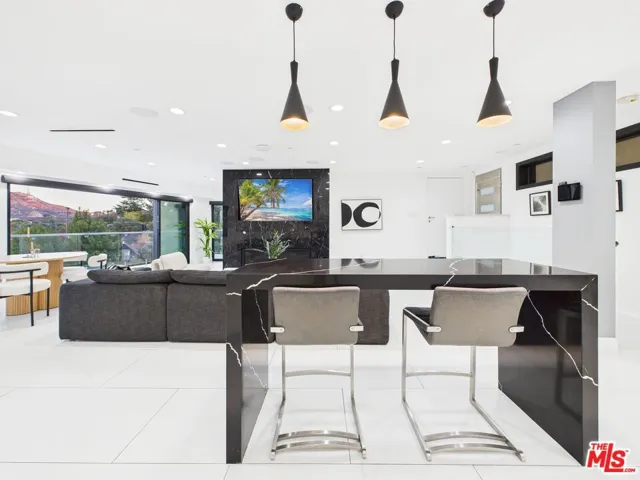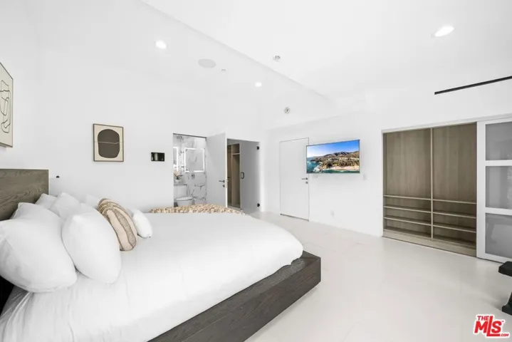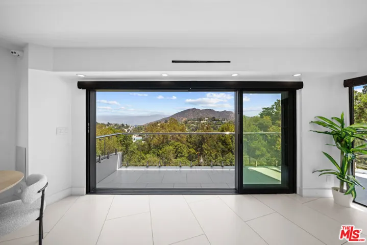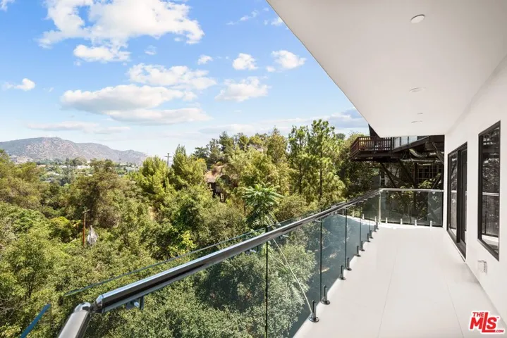 Elevated above Mulholland Drive in the Hollywood Hills, this architectural home showcases unobstructed views of the city lights, surrounding mountains, and the iconic Hollywood Sign. Designed for both relaxation and entertaining, the home features a seamless open floor plan with expansive sliding glass doors that invite natural light and breathtaking sunsets. The open-concept interiors feature a chef’s kitchen with professional-grade appliances, an expansive island, and effortless flow into the living and dining spaces. The primary suite is a private sanctuary with a balcony, sitting area, custom walk-in closet, and a spa-level bath with soaking tub, glass-enclosed shower, heated floors and European finishes. Equipped with state-of-the-art Crestron smart home automation, the residence offers effortless control of automatic shades, multi-room speakers, dimmable lighting, climate, and security all from your device. For music enthusiasts, a professional-grade recording studio with full soundproofing provides the perfect environment to create and produce with ease. Additional features include fruit trees, and a reverse osmosis water system delivering purified alkaline water straight from the tap. With striking curb appeal, a beautifully landscaped front yard, a two-car garage, park 5 cars total in garage/drive way, EV charging, and a desirable location just moments from Runyon Canyon, the Hollywood Bowl, and the Sunset Strip, this residence embodies modern luxury in one of Los Angeles’ most iconic settings. Must see in person. Views and space far better than photos. Call for your tour today .