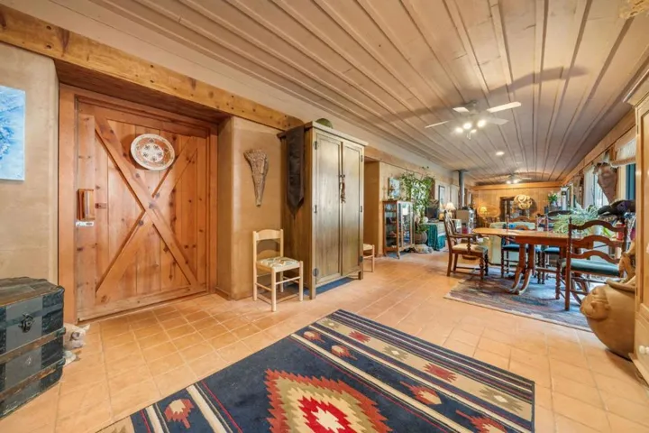 FIRST TIME ON THE MARKET IN 33 YEARS! One-of-a-kind home on 20 acres bordered by Humbug Creek just off Highway 26. This unique adobe home futures rammed earth walls 24 thick, the walls provide insulation for winter and summer comfort. Custom redwood cabinets in kitchen & baths blend with the countrys rustic feeling. The home is 2500 sq. ft. of living space with 2 main bedrooms, country kitchen and huge great room with 11 ½ ft ceiling, 700 sq ft enclosed porch. Mission tiles were hand cast in place and provide additional thermal mass, hand craft doors and thresholds. All walls and ceiling are covered with 1x 10 pine board & batten paneling. House site overlooks lovely meadow surrounded by pines. 250 deep well water at 60 ft. level excellent quality water.