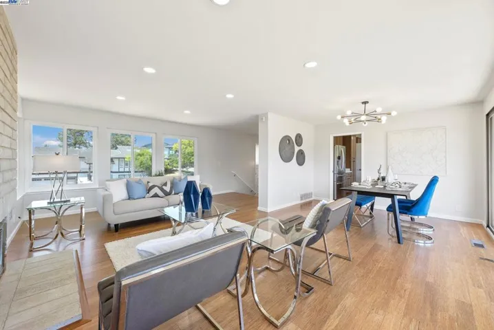 Beautifully updated 5-bed, 3-bath home in the desirable Hayward Hills! Perfect for large or multi-generational families, this versatile property features two separate living areas with 2 full kitchens. The upper level offers 3 beds, 2 baths, and an open-concept layout. The lower level includes 2 beds, 1 bath, a spacious family room, and a second kitchen—ideal for in-laws or rental income. Recent updates include modern kitchens and baths, new flooring, and updated lighting throughout. Enjoy the serene setting from your backyard featuring an outdoor jacuzzi, perfect for relaxing or entertaining. Located on a quiet cul-de-sac close to parks, hiking trails, and freeway access. A rare find in Hayward Hills!