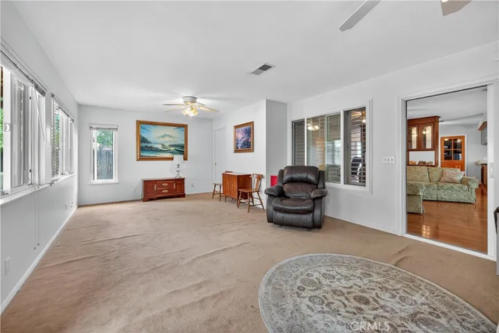 Inside, you’ll find 3/4″ solid oak hardwood floors, dual-pane Milgard & Andersen windows with elegant Norman plantation shutters, and ceiling fans in every room for year-round comfort. The home also boasts copper plumbing with a 2022 upgrade to under-house PVC and central A/C for modern convenience.