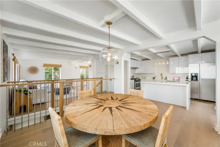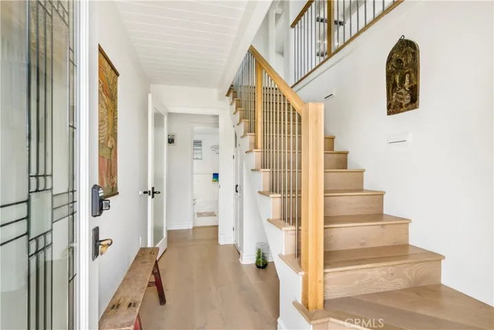 This charming, highly upgraded home offers stunning ocean views and is located moments from downtown Laguna Beach. The open floor plan on the upper level includes an expansive living section, a dedicated dining area, and a recently remodeled kitchen – all connected to the attached deck of impressive proportions via two sets of sliding doors. A perfect backdrop for enjoying the coastal lifestyle, with the panoramic canyon, city, and Pacific vistas visible through the oversized windows and from the adjacent balcony which doubles as an outdoor living area. The kitchen is an ideal gathering place and features a sleek waterfall edge island, new cabinetry, and elegant finishes. A bathroom completes this level. On the ground floor, three bedrooms share a bath and the spacious primary retreat connects to the home’s private, fenced in yard. New hardwood flooring throughout the main areas adds to the property’s refined aesthetic and a two car garage provides further storage. The coveted Arch Beach Heights neighborhood is known for its proximity to Moulton Meadows Park and offers easy access to Downtown, providing a perfect blend of comfort and convenience.