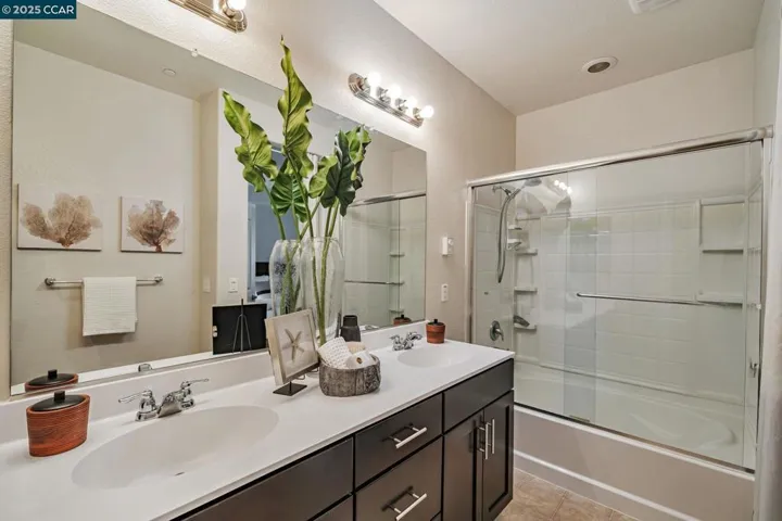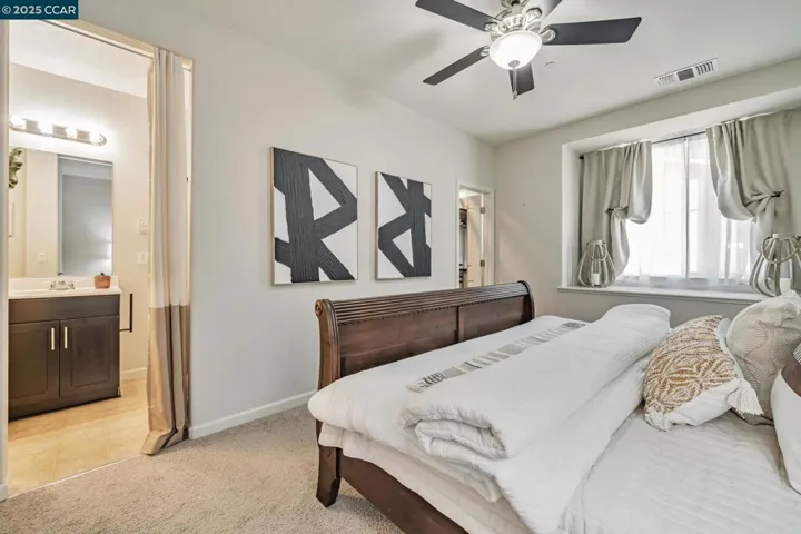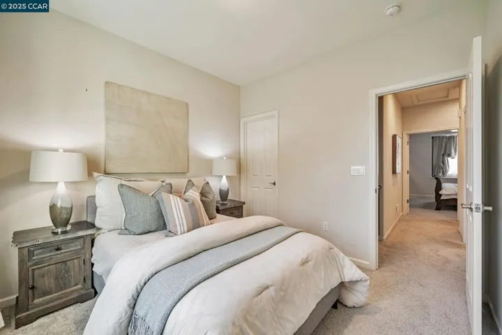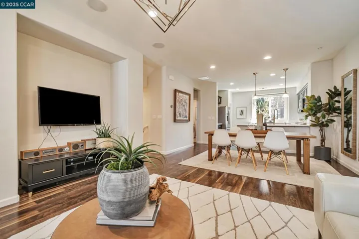 Gorgeous North-Facing Home in Prime Dublin Location! Welcome to this beautifully upgraded 3bed, 2.5bath home, ideally situated at the end of a quiet cul-de-sac in the desirable Emerald Vista community. This home features an open-concept layout with soaring ceilings, recessed lighting, elegant centerpiece chandelier & durable laminate wood flooring throughout the main living areas. Spacious living room includes built-in speakers, perfect for entertaining. Gourmet kitchen boasts rich espresso cabinetry, SS appliances, ample counter space & spacious walk-in pantry. Smart home upgrades include Nest Doorbell, Nest Thermostats, and smart light switches. Ground-level bonus space offers flexibility for a home office, gym, or playroom. 3 generously sized bedrooms in the upper level provide comfort and privacy. This move-in-ready home includes washer/dryer, refrigerator & water softener. Minutes from shops & restaurants – Persimmon Place, Hacienda Crossings & SF Premium Outlet. Easy access to I-580/I-680 & Dublin/Pleasanton BART. Low HOA ($273/mth), excellent location, and modern upgrades make this home a must-see!