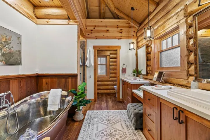 Welcome to Mount Hermon, Cedar Lodge! This luxurious log home is refined in its comfort with the most modern of systems, its outward rustic appeal oozes at every turn. Every aspect is thoughtfully designed and engineered to state-of-the art standards and high energy economy. Incense Cedar logs from the Oregon Cascade Mountains combined with interior walls of traditional framing results in exterior walls over a foot thick for warm winters and cool summers. The all pine interior, stunning stone features, luxury plank flooring over clean and quiet radiant warm floor water heated all grace this home, evidencing the engineering, craftsmanship and style. The posts, railings and handrails are eastern white cedar and the impressive interior open stairway is hewn from Lodgepole pine logs. A stone masterpiece with gas fireplace is the center focus of the entry, great room and light-filled dining room. Combining the open and airy great room with the huge deck, the home works well for gatherings of all sizes. The massive 3 car garage, workshop and storage is on the ground level with a fully approved apartment above. The property is within easy walking distance to Mount Hermon activities yet distant enough to be comfortable from the hustle and bustle. An easy commute to Silicon Valley.