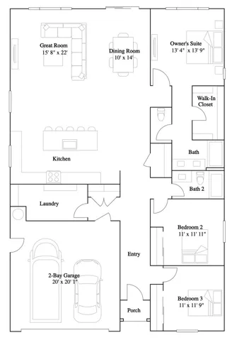 NEW CONSTRUCTION! This new single-story home offers a modern and low-maintenance design. Two bedrooms are secluded near the entry, leading to an inviting open-concept floorplan shared between the kitchen, living and dining areas. A luxurious owner’s suite is nestled into a private rear corner with direct access to a full bathroom and walk-in closet. The home features a three car garage.