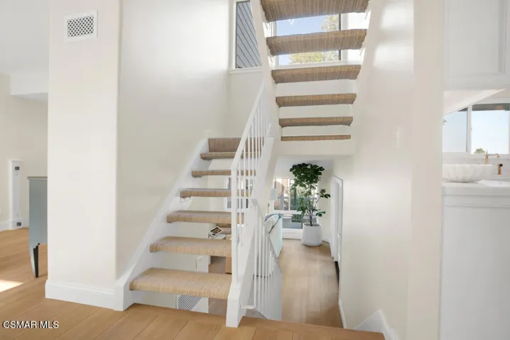 This exquisite home has been completely updated from top to bottom, featuring luxurious vinyl wood flooring, recessed lighting, and a dream kitchen with custom cabinetry, marble countertops, subway tile backsplash, built-in refrigerator, and professional-grade stainless steel appliances. The living room is a showstopper with its elegant fireplace and custom French doors that open to a large deck offering scenic views of the lush complex and a partial lake view. Adjacent to the kitchen, the spacious family room includes a second private balcony perfect for relaxing or entertaining. All windows and sliding doors have been replaced with energy-efficient upgrades, enhancing comfort and style throughout. Upstairs, the primary suite boasts stunning main channel lake views, two walk-in closets (including a cedar-lined one), and a spa-like en-suite bathroom featuring a custom vanity, marble countertops, and a beautifully tiled shower. The secondary bedroom also offers captivating lake views and mirrored wardrobe doors. The hallway bathroom includes an oversized soaking tub with elegant tile accents and a custom vanity. Additional highlights include a powder room on the entry level, a generous indoor laundry area with built-in cabinetry, a one-car attached garage with direct access, and an adjacent covered carport for added convenience. Community amenities are second to none enjoy two resort-style pools, a newly renovated clubhouse with a pool table and large-screen TV (ideal for entertaining), and a state-of-the-art fitness center. Three docks on the lake offer boat slips available on a first-come, first-served basis. The HOA covers insurance, all plumbing repairs, trash, water, cable, and high-speed internet. Live the lakefront lifestyle in Westlake Village one of Southern California’s most desirable communities.