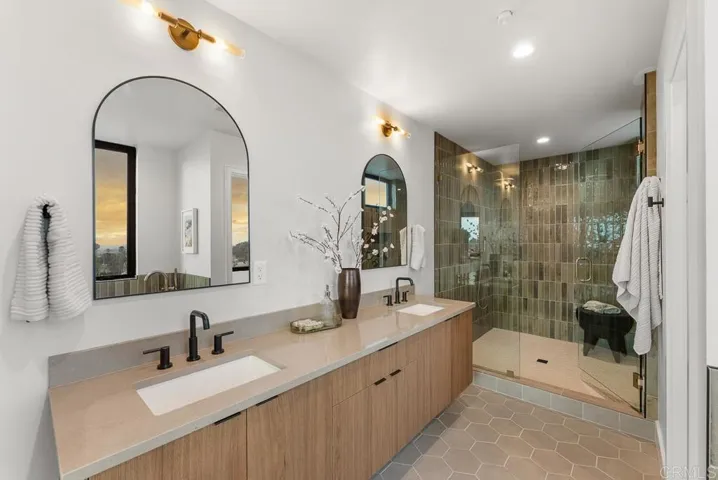 MODEL UNIT AVAILABLE TO TOUR – Welcome to Bay View 13, a new luxury townhome community in the Bay Park neighborhood of San Diego. Set on a bluff with breathtaking views of Mission Bay and the ocean, this exquisite three-level home at 4224 Tonopah (1 of 13 available homes) offers 3 bedrooms / 3.5 baths / office. The home features an open concept layout with designer touches, including a large kitchen island, solid surface quartz countertops with matching backsplash, and custom inset European slab cabinets. Enjoy the elegance of brushed gold kitchen hardware, Thermador appliances, floating iron staircases with custom glass work, engineered hardwood floors, and stylish lighting fixtures. The space is bathed in natural light from oversized windows and balcony slider doors. Spacious bedrooms all with on-suite bathrooms and three private decks totaling 154 sf. The 401 sf private garage is set up for EV charging and home comes with owned solar. Great central location provides easy access to transit, local dining, coffee shops, and the expansive Mission Bay Park, a 4,600-acre oasis perfect for biking, jogging, picnicking, and water sports. The expanded Blue Line (light rail), short walk away, connects to Downtown, UCSD, UTC, Sorrento Mesa and beyond. Call for details about buyer concessions which can be used towards a rate buy-down or home upgrades.