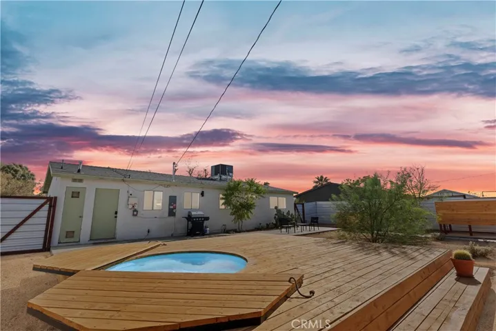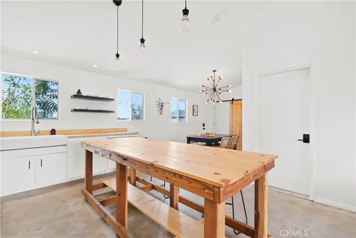 Step into this fully furnished 2 bedroom, 1 bathroom artistic retreat where modern design meets creative flair. With an open concept floorplan, this home flows effortlessly from the sleek kitchen to the airy living and dining areas, creating a spacious and welcoming environment perfect for relaxing or entertaining. Thoughtfully curated furnishings and bold, contemporary decor and unique personality with the interior decor, accompanied by a lot of natural light and concrete floors. Out back, the real magic happens! Designed for entertaining and unwinding, the expansive backyard features two private outdoor showers, a stylish cowboy tub for cooling off, and multiple chaise loungers for soaking up the sun. Whether hosting friends for a day in the sun or BBQ, or enjoying a quiet evening under the stars, this vibrant outdoor haven is the perfect extension of the home’s creative soul, and is ideal for those who appreciate style, comfort, and a touch of the unexpected.