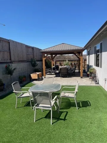 Welcome to this Stunning & Energy-Efficient 3-year-new, bright, and airy single-story home that shows true pride in ownership. With an open-floor plan and stylish finishes throughout, this home offers the perfect blend of comfort and functionality. You will love the modern kitchen featuring ample cabinetry, an island and stainless-steel appliances. The spacious primary suite with walk-in closet with ample shelving. Dedicated laundry room with lots of cabinets and counter space. Lovely backyard oasis featuring a covered concrete patio, and low-maintenance landscaping in both front and back. Owned solar panels. A must see