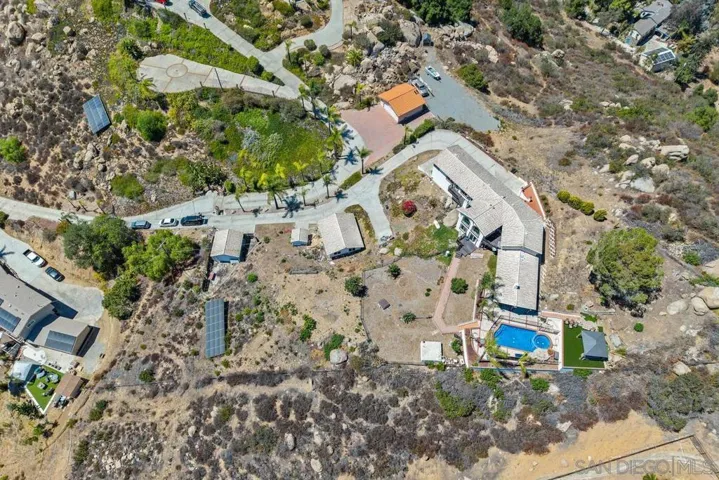 Granite Hills entertainer’s oasis! This 1.25-acre estate offers panoramic views, 4 bedrooms, 4 baths, and abundant living space. Garages for 5 vehicles, RV parking, and owned solar add convenience and value. Inside, rich wood floors flow through the great room to walls of windows framing forever views. The gourmet kitchen features dramatic granite counters, Viking appliances, a 60″ six-burner range, and 48″ Sub-Zero refrigerator. The formal dining area doubles as a game room, while the sunken living room and two balconies create ideal gathering spaces. The primary suite showcases sweeping vistas, a walk-in closet, and spa bath with dual vanities, separate shower, and Jacuzzi tub. Downstairs includes 2 bedrooms, 2 full baths, laundry room, bonus space, and family area. Detached garage converted into a 2 bed 1 bath ADU with Kitchen. Great value for extended family or rental. Resort-style living with privacy, parking, and panoramic views—welcome home! Welcome to your private Granite Hills retreat—an entertainer’s dream with sweeping panoramic vistas! Situated on 1.25 acres, this estate showcases 3+ bedrooms, 4 baths, expansive indoor and outdoor living spaces, and garage parking for up to five vehicles. Additional features include RV parking, owned solar, and more. Step through the formal entry and be greeted by rich wood floors leading into the great room, where endless views set the tone. Across from the formal dining area—currently used as a game room—you’ll find the grand gourmet kitchen, highlighted by striking granite counters and a full suite of Viking appliances, including a 60-inch six-burner range and a 48-inch Sub-Zero refrigerator. Gather at the oversized eat-up bar or relax in the sunken living room while enjoying the views, whether from indoors with central cooling or out on one of two private balconies. The primary suite offers breathtaking vistas, a generous walk-in closet, and a spa-inspired bath featuring dual vanities, a separate shower, and a two-person Jacuzzi tub. Downstairs, two additional bedrooms and two full baths are complemented by a laundry room, bonus space, and a family area—perfect for flexible living.
