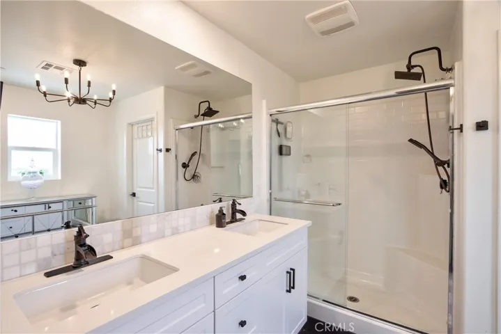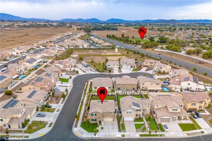 Turnkey 4-Bedroom Home with Designer Upgrades in Temecula – PAID FOR SOLAR, Built in 2022. Welcome to this move-in ready home located in Winchester and is located in the highly desirable Temecula school district. Built in 2022, this spacious 4-bedroom, 3-bathroom home offers 2,590 sq ft of modern living space on a large pool-sized corner lot with ample guest parking. Step inside to find a custom designer accent wall with stylish light sconces. The open floor plan features a downstairs bedroom and full bath—perfect for multi-generational living or guests. The gourmet kitchen is a chef’s dream, featuring a large center island with seating, herringbone backsplash, walk-in pantry, plenty of cabinets for storage, gold hardware and faucet, and designer pendant lighting. The kitchen flows seamlessly into the great room, which includes a cozy gas fireplace with floating shelves and wood mantel, and a large sliding glass door that opens to the spacious backyard—ideal for indoor-outdoor living and entertaining. Upstairs, enjoy a large loft/family room, upstairs laundry room with storage, two secondary bedrooms, and a full bathroom with dual sinks and tub/shower combo. The luxurious primary suite includes a generous bedroom, double sink vanity, walk-in shower, and an oversized walk-in closet. The backyard is perfect for entertaining, with a large covered patio, fruit trees, block wall fencing, and plenty of space for a custom pool or garden. Additional Features: include