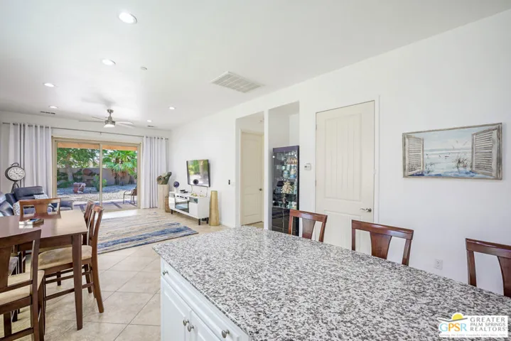 Seller is offering seller financing on this Beautifully Upgraded Hideaway Plan in Sun City Shadow Hills. Room for Pool! Built in 2012, this highly upgraded Phase 3 Hideaway plan offers 1,512 sq. ft. of open-concept living in one of the newest areas of Sun City Shadow Hills, Indio’s premier 55+ active adult community. Featuring 2 bedrooms, 2 baths, plus a versatile den that can easily be a third bedroom or home office, this home checks all the boxes. The modern front elevation is enhanced by easy-care desert landscaping and a large, pool-sized lot. Inside, 24×24 diagonal-set modern tile flows through the main living spaces, complemented by plantation shutters throughout. The chef’s kitchen boasts crisp white cabinetry, granite countertops, a stool-height prep island, dining area, and great room perfect for entertaining. The spacious primary suite includes patio access through a glass slider and features a barn-style door leading to the luxurious bath with dual vanities, walk-in shower, and a generous walk-in closet. Guest bedroom and primary closets have upgraded diagonal patterned carpet. The extended garage includes an insulated overhead door, anchored storage cabinets, and side door access to a walkway connecting to the driveway. Outdoor living shines here with an extended concrete patio, Alumawood cover, fire pit, tranquil water feature, raised garden beds, and gorgeous sunset skies.Enjoy resort-style living in Sun City Shadow Hills, with championship golf, pickleball, tennis, fitness center, pools, clubhouses, and endless activities. This move-in ready home offers comfort, upgrades, and space to design your dream desert lifestyle.