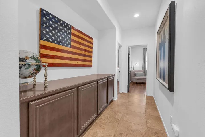 Welcome to this exceptional home in the desirable Talavera community! Offering over 2,917 square feet of meticulously maintained living space, this 5-bedroom, 3-bathroom residence seamlessly combines style and functionality. The expansive and sunlit open kitchen is a chef’s delight, featuring granite countertops, stainless steel appliances, and elegant dark cabinetry with modern fixtures. Enjoy meals in the spacious dining area or at the convenient bar seating.Inside, additional upgrades include new can lighting in the front and rear living rooms with energy-efficient LED replacements, enhancing the home’s warm ambiance. The flooring has been thoughtfully updated, with stunning tile in the front and rear living rooms and one bedroom, while two other bedrooms boast durable laminate flooring. Recently upgraded systems include a newer AC unit, garbage disposal, and water heater for added peace of mind.The master suite is a true retreat, showcasing a luxurious and oversized walk-in closet, and a spa-inspired bathroom with a separate shower and tub–perfect for unwinding after a long day. Each bedroom is generously sized with ceiling fans, making them ideal for family, guests, or a home office.Exterior enhancements elevate the property’s appeal with an added pool & spa, a sophisticated patio cover, stylish pavers, and a cozy fire pit. For practicality, there’s cemented RV parking complete with 220 electrical hookups. The professionally designed landscape further underscores the home’s impressive curb appeal.Situated in a fantastic location, this home is conveniently close to Acrisure Arena and the renowned Classic Club Golf Course, offering plenty of entertainment and recreation options just a short drive away. Discover the perfect blend of comfort and elegance in this wonderful Talavera home!