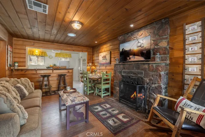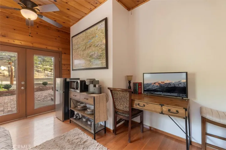 Charming affordable lakefront property located on beautiful Grout Bay in Fawnskin! Beautiful rustic home includes 3 bedrooms, 2 full baths, hardwood floors throughout, separate laundry area, and a light and bright kitchen! The third bedroom has its own entrance and bathroom and is currently set up as a studio type room with a futon, desk, refrigerator, microwave, and coffee bar, although it could be an office, home gym, or whatever you’d like! Gather around the fireplace in the cozy living room on those chilly mountain nights and relax and enjoy the ambiance! The front porch and patio area make for a great place to enjoy the crisp mountain air, entertain guest and watch the wildlife! The famous Big Bear bald eagles nest home to Jackie and Shadow is located in the forest just across the bay! This wonderful lakefront property sits just below Captain Johns Marina with only two other homes in the bay and has a shared dock and beach area with the neighbor directly next door. Plenty of parking for you and your guest as well as a storage shed! Newly paved access road down to the property, newly seeded lawn and sprinklers! Don’t miss out on this wonderful opportunity to have your very own slice of mountain paradise! Just in time for the holidays! Don’t wait! Start making memories now with your family and friends!