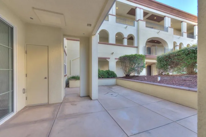 Discover this beautifully upgraded 2-bed, 2-bath, 1,259 sq ft single-level condo, built in 2007 and lovingly maintained by its original owner, located on the serene courtyard level (2nd floor) of the Terra Serena Luna community. No neighbor on one side, the spacious west-facing patio enhanced with lush greenery that offers natural privacy extends your living space and pairs perfectly with the open layout, making it ideal for relaxing, entertaining, and providing a great space for children to play and explore. The spacious primary suite features a walk-in closet, double vanity, soaking tub, and separate shower. Upgrades include stylish engineered hardwood floors, granite kitchen countertops, new carpet, fresh paint, new stainless steel appliances, new energy-efficient LED lights, and new ceiling-mount LED fixtures. Enjoy in-unit laundry, central heat and A/C, two detached private garages, and a nearby exterior storage room. The unit is also just steps from both the elevator and stairs. Community amenities include EV chargers, a clubhouse, gym, pool, jacuzzi, BBQ area, playgrounds, landscaped courtyards, and elevators. HOA dues include water, garbage, and insurance. This condo is within walking distance of the Great Mall, light rail & a nearby park. Some photos virtually staged.