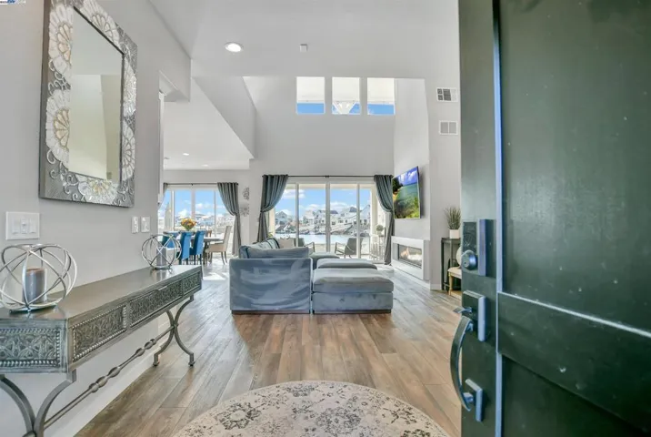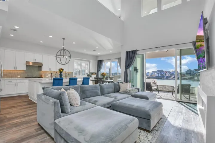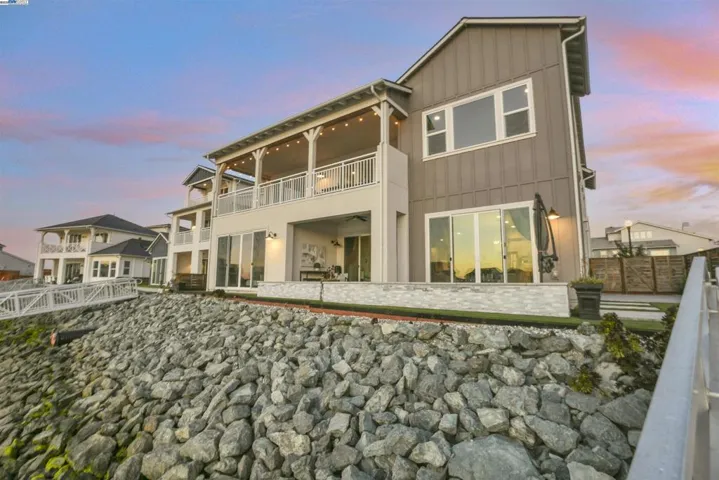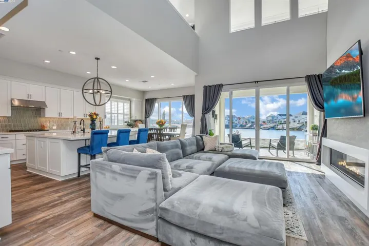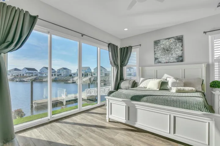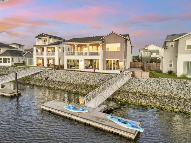 Welcome to 30 Grey Whale Place, where luxury living meets serene waterfront beauty! This stunning open-concept home is flooded with natural light through expansive windows and showcases breathtaking views throughout. Designed for seamless indoor-outdoor entertaining, the upgraded first-floor sliding doors open to a beautifully finished delta patio, perfect for relaxing or hosting gatherings. The main level features a spacious primary suite with a large bathroom and a walk-in closet connected to private laundry. There is also a secondary guest bedroom with its own bathroom, a cozy great room with a fireplace, a chef’s kitchen with extended cabinets, a formal dining area, and a convenient half bath for guests. Upstairs, you’ll find a large loft ideal for a home office or entertainment area, two additional bedrooms each with private bathrooms, and a second-floor balcony—perfect for enjoying sunsets, morning coffee, or evening wine. Additional highlights include a private dock, side yard, low-maintenance landscaping, dusk-to-dawn lighting, pre-wired for EV charging, owned solar panels, and access to exceptional HOA amenities such as a yoga studio, gym, pool, Jacuzzi, clubhouse, firepits, outdoor kitchen, playground, greenbelt, boat slips, dog park, walking trail, sand volleyball,