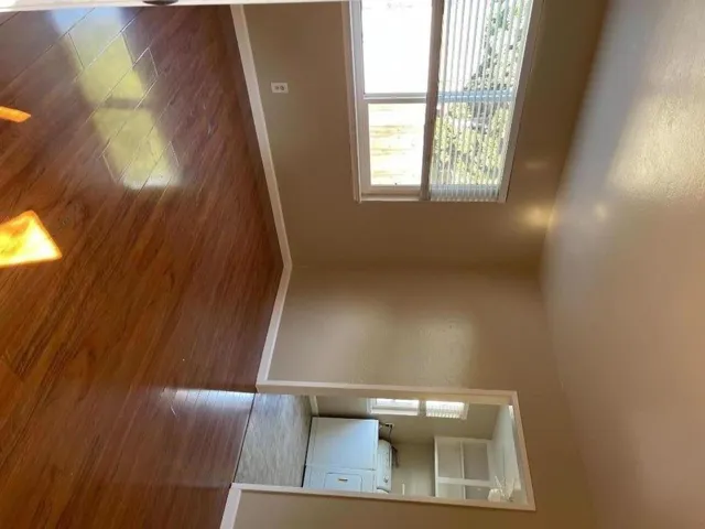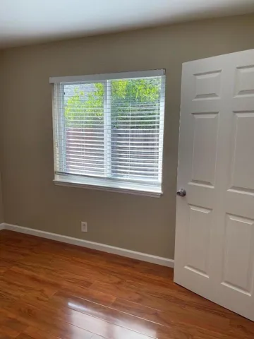 This lovely back unit of a duplex is bright, spacious and so charming! Features a large eat in kitchen, full size washer and dryer, laminate floors through out. It has double pane windows, ceiling fans and a wall heater. It has a large backyard and a detached 1 car garage. Available now for immediate occupancy.