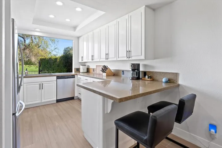 Experience modern luxury in this remodeled 2BR/2BA + den home overlooking the Pete Dye golf course at Westin Mission Hills Resort. A private courtyard welcomes you into spacious indoor/outdoor living, while the back patio features a new saltwater pool with stunning golf course and mountain views. Inside, the sleek open kitchen flows to the dining area, great room, and den (optional sleeping space). The primary suite boasts a spa-like bath with walk-in shower and double vanities, plus extensive closet space. Guest bedroom with adjacent bath ensures privacy. Blending modern sophistication with warmth, this home is just minutes from world-class shopping, dining, and entertainment–making it the perfect seasonal retreat. Available December 2025, January and April 2026. Leased February and March 2026.