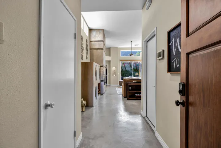 Welcome to your private desert retreat in sought-after La Quinta Cove! This Santa Fe-style home blends charm, character, and modern updates with breathtaking views of the Santa Rosa & San Jacinto Mountains. A gated front courtyard welcomes you with an outdoor kitchen/BBQ, firepit & a covered seating area – perfect for relaxing or entertaining while enjoying colorful sunrises in total privacy. Inside, the open living area features polished concrete floors, transom windows, custom built-ins, and a striking custom fireplace. The fully renovated kitchen offers quartz countertops, stainless steel appliances & a breakfast bar opening to the dining space. The backyard is a true resort escape with a covered sitting area & a sparkling pool/spa, framed by dramatic mountain vistas. Perfect as a primary home, vacation retreat, or investment, this property is located near hiking and biking trails, the shops & restaurants of Old Town La Quinta, the Empire Polo Club (Coachella & Stagecoach) & the Indian Wells Tennis Garden (BNP Paribas Open). A rare opportunity to own a stylish Santa Fe home in one of La Quinta’s most desirable locations!