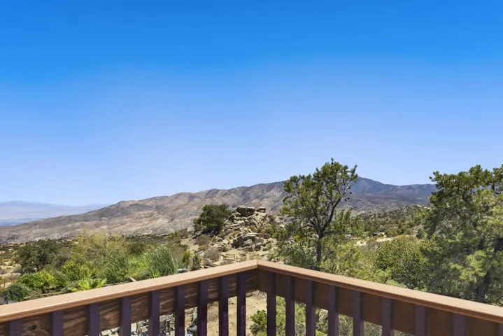 Sanctuary in the Sky: Elegant Mountain Living Above the Coachella ValleyNestled in the exclusive enclave of Pinyon Crest, just 20 minutes from the world-class shopping and dining of El Paseo–”The Rodeo Drive of the Desert”–this custom mountain estate offers a rare fusion of natural beauty, architectural grace, and modern comfort. Set at 4,100 feet in the San Jacinto Mountains, enjoy temperatures 15-20 degrees cooler than the desert floor, crystal-clear air, and a sense of seclusion in a private, gated community featuring its own pure-water system and meticulously maintained roads.Commanding a pristine 2.5-acre lot bordering the Santa Rosa and San Jacinto National Monument, this 2,700+ sq. ft. residence delivers uninterrupted vistas of the Coachella Valley, Little San Bernardino Mountains, and the often snow-capped Mount Santa Rosa. Nearly every room captures the outdoors, and multiple decks extend the living experience to the open sky–where brilliant sunrises and starlit nights under the Milky Way define the rhythm of life.The main home features three bedrooms plus a dedicated office, including private guest quarters with one bedroom, a separate living area and entrance–ideal for hosting or multigenerational living. A gourmet kitchen anchors the home with Cambria quartz counters, premium appliances, and abundant cabinetry. The primary suite is a sanctuary of its own, complete with a generous walk-in closet and serene mountain views. Almost all bedrooms open to decks, seamlessly merging indoor and outdoor living. Outdoors, nature unfolds as art: seven cascading ponds filled with Japanese koi, accented by lotus blooms and water lilies, create a tranquil soundscape. Native pines, palms, and seasonal wildflowers flourish without effort, offering ever-changing splashes of color. Miles of nearby hiking and biking trails begin just steps from your door, inviting daily adventure in a setting where privacy and natural wonder prevail.A rare offering for those seeking elegance, serenity, and the ultimate connection to nature–yet minutes from the vibrance of the desert’s most celebrated destinations.