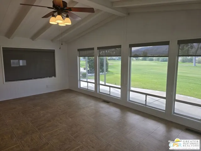 Come see this 2bed/2bath 1440 sq ft home with an open, easy flow floor plan with GREAT views of golf course and mountains. Vaulted ceiling in LR and Dining Area adds to the “open feel” of this home. Kitchen features granite composite counters with a raised 4burner gas cooktop accented with a large breakfast counter. The black matte appliances meld in perfectly with the granite counters. Flooring consists of tile in kitchen, both bathrooms and laundry area, laminate in Family Room and Guest bedroom, Vinyl in Primary Bedroom plus LR/Dining Area. There’s an expansive LR (has privacy solar shades)/Dining Area and off the kitchen is a Family Room with wet bar. Slider in Family Room leads to a very private, lush green foliage patio area with hot tub as its center of enjoyment. Both bedrooms feature not only double or triple wide closets but also each has walk in closet. Home has a nice energy conserving tankless water heater and HVAC system and roof have been meticulously maintained, as has all features of this home. There is pride of ownership that shines throughout the home and its exterior features as well. Make this YOUR HOME and enjoy this 55+ Active Adult, gate guarded community with 18 holes of golf, on-site restaurant, multiple pools/spas, tennis/pickleball courts,, community RV parking,,even a doggie park. Casino only minutes away and many local shopping/restaurants to choose from + CV Rep Theater & Mary Pickford Cinema to enjoy. All this homes to make it extra special is YOU!!