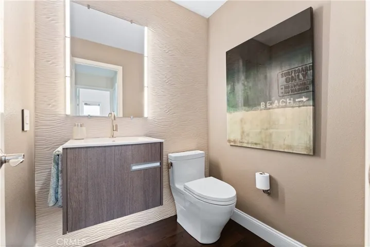 This stunning remodeled home blends modern luxury with coastal charm, designer finishes throughout, and canyon & peekaboo ocean views. Entering the light-filled home, enjoy luxurious Mirage walnut floors, French doors, newer windows, recessed lighting & designer light fixtures throughout, as well as elegant crown molding with accent lighting in the dining room. The gourmet kitchen is a chef’s dream featuring newer cabinetry with self-closing wood drawers & pull-outs, soft close doors, quartz counters, and an enlarged island with wine fridge & sink. Premium appliances include a Viking 5-burner cooktop, pot filler faucet, newer built-in KitchenAid 42″ refrigerator, Fisher & Paykel dishwasher drawers, GE Monogram convection oven, convection microwave, plus a generous walk-in pantry and reverse osmosis with insta-hot dispenser. Upstairs, the primary suite offers high ceilings and ocean glimpses, complemented by a spa-inspired bath with radiant heat floors, a Sani-jet soaking tub, rain shower, towel warmer, and walk-in closet. Additional highlights include a permitted loft, 3 additional bedrooms (one with custom office built-ins), upgraded baths with premium fixtures, a porcelain tile wall in the powder, Toto toilets throughout, newer garage doors, and on a single loaded cul-de-sac street! Every detail has been considered, from dual Nest thermostats, attic fan, whole-house water softener, and epoxy-coated pipes, to refined lighting and finishes throughout. Step outside to your private backyard retreat, designed for effortless entertaining and relaxation. Featuring an outdoor living space with pavers, covered patio with TV, fans & heater, built-in Viking BBQ with sink, a gas fire pit, tranquil fountain, and raised garden beds, all on a 9700 square foot lot. Mature landscaping, outdoor lighting, and low-maintenance turf create year-round beauty and comfort. Ideally located in the sought-after Marina Hills community where residents enjoy a resort-style lifestyle with pool, spa, tennis and pickleball courts, clubhouse, BBQ area, playground, and year-round events—all just minutes from award-winning schools, scenic trails, pristine beaches, dining, shopping, and world-class resorts.