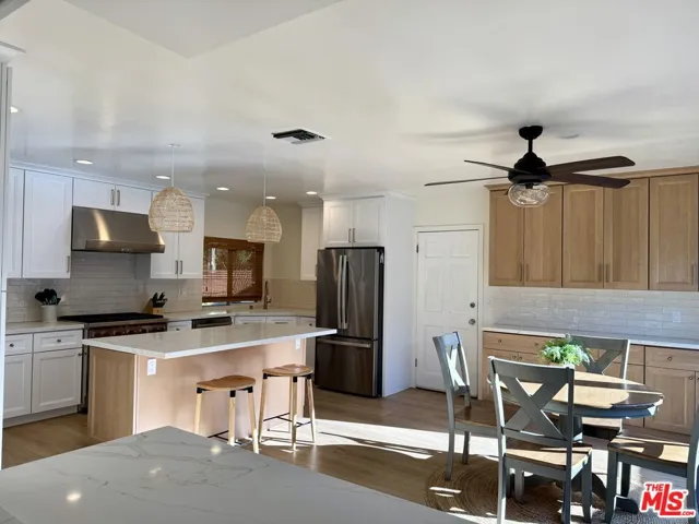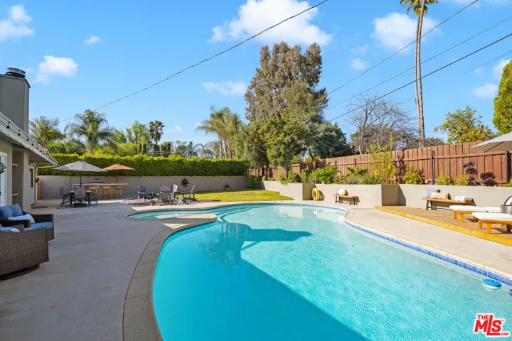 FULLY FURNISHED, FULLY EQIUIPPED!!! This mid-century modern home in Woodland Hills/Calabasas offers comfort, style, and convenience just 25 minutes from Malibu. Featuring vaulted ceilings, skylights, and sliding glass doors, the interior is filled with natural light and contemporary charm. The open-concept living and dining area includes a cozy fireplace and large-screen TV, while the gourmet kitchen is equipped with a Wolf gas range, stainless steel appliances, bar area, and ample storage. With four bedrooms, including a primary suite with king bed, ensuite bath, and walk-in closet, plus a dedicated gym and multiple office nooks, the home is ideal for families or groups. The resort-style backyard boasts a pool, hot tub, fire pit, wood deck, outdoor kitchen/bar, and multiple lounging and dining spacesperfect for entertaining. Located in a quiet, safe neighborhood with a circular driveway, Tesla charger, and plenty of guest parking, the home is just minutes from Calabasas Commons, Westfield Topanga, and offers easy access to downtown LA.