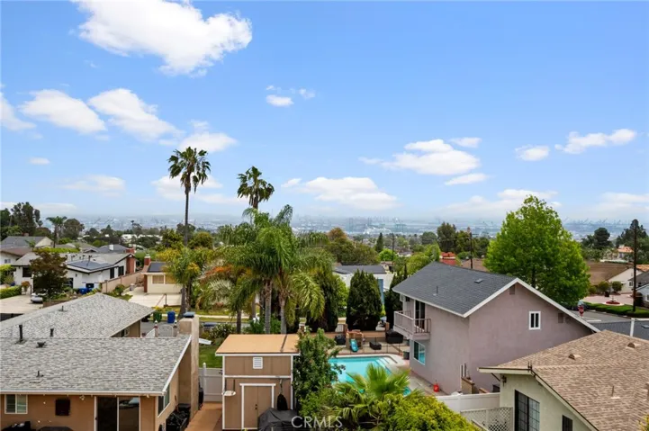 Enter onto the expansive patio and take in panoramic views of the Pacific and the bustling Port of Los Angeles — the perfect backdrop for morning coffee, sunset cocktails, or weekend entertaining. The coastal breeze and crown-molded interiors flow seamlessly together, creating an effortless blend of elegance and relaxation.
