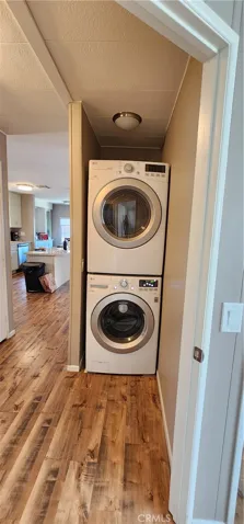 Discover this beautifully upgraded 2-bedroom, 2-bathroom home—stylish, comfortable, and completely move-in ready! The open-concept kitchen is the heart of the home, featuring a large island, designer cabinetry, granite countertops, and a deep sink—perfect for both cooking and entertaining. Additional upgrades include laminate flooring throughout, energy-efficient double-pane windows, elegant designer blinds, and convenient in-home stackable washer & dryer, Newer A/C.