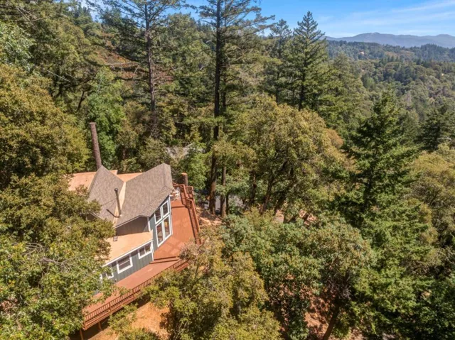 Relax beneath the forested canopy enjoying stunning views of the sparkling Monterey Bay and white water breaking at Moss landing. Soaring ceilings and natural wood beams, recently renovated kitchen with granite countertops, new cabinetry, and updated flooring; prepare meals while taking in the Monterey bay and distant vineyard covered range views through stunning, oversized designer windows. Downstairs living space could potentially become an attached ADU with the addition of a kitchenette, guests, rental income, or multigenerational living. Outdoors, a large deck, plenty of flat land for additional parking, and a Zen feeling Moss Covered Boulder Garden with ancient cultural grinding stones are the perfect place to find peace and harmony with nature. Located in the welcoming Las Cumbres community, residents enjoy exclusive access to a pool, tennis and basketball courts, sport field, bocce, playground, community barbecue area, garden, and Fire Station for added peace of mind. Detached 2-car garage with small workshop. Madrone HighSpeed Internet. Automatic failover generator keeps the power on when utility power is unavailable. Award-winning Los Gatos High School. More than a home, a lifestyle, combining tranquil mountain living with the vibrant amenities of a tight-knit community.
