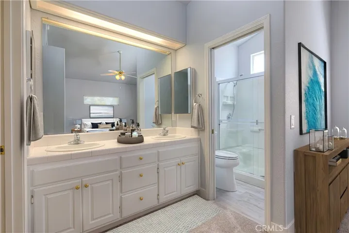 Pristine condition for this wonderful home nestled in the highly sought after Sierra Sunrise 55+ community, offering peace and tranquility!! This beauty has not only the largest lot in Fairfield commons, but also has one of the only 2.5 car garage set ups which is great for workshop area, storage or hobbies!! Located on sweeping corner lot into Ginger lane with outstanding curb appeal and large spacious concrete driveway for ample off street parking. The home has undergone extensive remodeling in last several months with all new LVP flooring in Entry, kitchen, laundry, bathrooms, office room and main living room, along with all new 4 inch base moldings through out the home. All new interior paint top to bottom, new carpeting in primary bedroom and guest bedroom, with 3rd bedroom used as office with LVP flooring, all new window shades, new wired in smoke detectors and more! The main living room offers extra high ceilings with nice downlighting and ceiling fan, completed with fireplace to enhance your cool winter nights. Primary suite offers high ceiling, large walk in closet with built in shelving, and additional closet as well, spacious sink area with separate room with a large shower and water closet. The 2nd bedroom is nice in size with full closet, all new carpeting, paint, molding and blinds. the 3rd bedroom is up front and was used as office room, this is a full size bedroom with full size closet, LVP flooring, new paint and moldings as well. Spacious kitchen with loads of cabinets, ample counter space, and bay window overlooking front entry, along with pass through opening to living and dining room. Off the kitchen is a spacious laundry room offering wash basin, and cabinets for storage too. Out back is fully fenced yard, concrete walkway and patio area with custom Spa which stays along with a covered area for Grilling. Located close to Lakes and walking trails in the Sierra Sunrise Terrace area of California Park. Roof inspection & HVAC in supplements, with roof recommendations being completed. If you are looking for the one home offering easy living, clean and move in ready, all level, this just may be the one!!