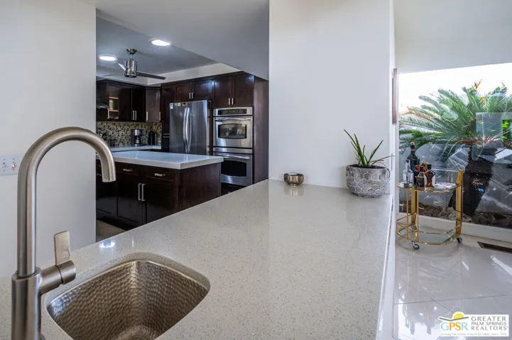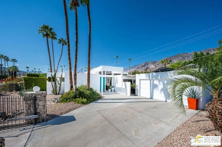 Prime Twin Palms Location | Contemporary Desert Living. Discover the perfect blend of style and sophistication in this stunning contemporary home, ideally located in the highly coveted Twin Palms neighborhood of Palm Springs. Step inside and be greeted by soaring ceilings, clerestory windows and walls of glass that flood the home with natural light while framing breathtaking San Jacinto Mountain views. The open-concept floor plan creates effortless flow between the living, dining, and outdoor spaces perfect for entertaining. The chef’s kitchen is beautifully updated and features premium appliances, a breakfast bar, and a casual dining area, complemented by a formal dining room for special occasions. The primary suite is a true retreat with panoramic mountain and pool views and a spa-inspired bath with soaking tub, and an expansive walk-in closet. The second ensuite bedroom includes a private patio for added privacy. The third bedroom has been converted to a media/den space but can easily be restored. Step outside to your private resort-style backyard, complete with a pool and spa, generous patio areas, and iconic Palm Springs views. Owned solar adds efficiency and value. This is the quintessential Palm Springs lifestyle at its best. Architectural design, modern upgrades, and a premier location.