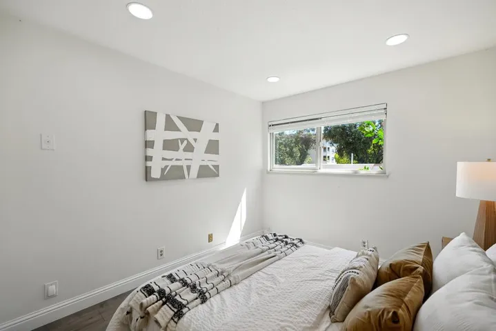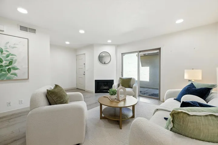 Stylish and move-in ready, this 3-beds, 2.5-bath, 1,366 sq. ft. two-story townhome offers privacy, abundant natural light & a welcoming layout designed for comfort. Nestled in a quiet, well-kept community, it features a gated front courtyard and sunny back patio, ideal for gardening, or entertaining. Inside, the living room showcases a cozy fireplace & recessed lighting. The dining area flows into a bright kitchen with stainless steel appliances, ample cabinetry, a newer range hood, & a glass door that opens to the patio. A full-size washer & dryer conveniently located downstairs. Upstairs, three bedrooms include a primary suite with vaulted ceilings, walk-in closet & remodeled bath. The secondary bedrooms share an updated hall bath. Additional highlights include wood flooring throughout, dual-pane windows, and detached 2-car garage accessed from the courtyard. Recent upgrades add even more value with central A/C, water softener, and water heater. The community offers a sparkling gated pool. Within walking distance is a nearby plaza with Starbucks, Safeway, a fitness center, and more. Just minutes from Santana Row, Valley Fair, and major Silicon Valley employers such as Apple and Nvidia. Easy access to highways. Dont miss this perfect blend of comfort, style & convenience!