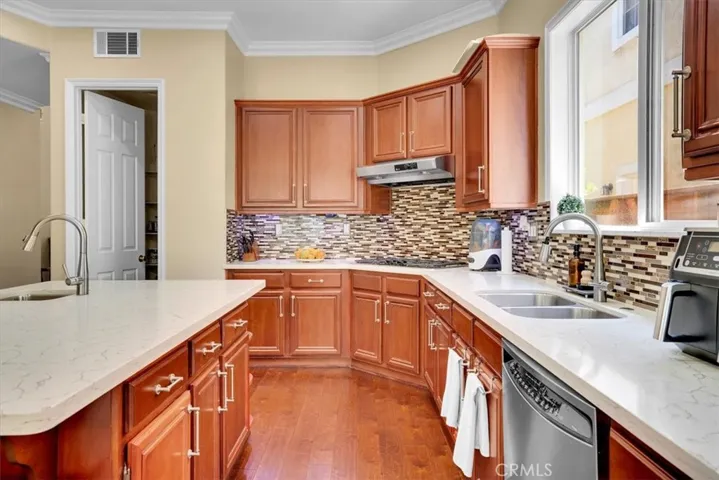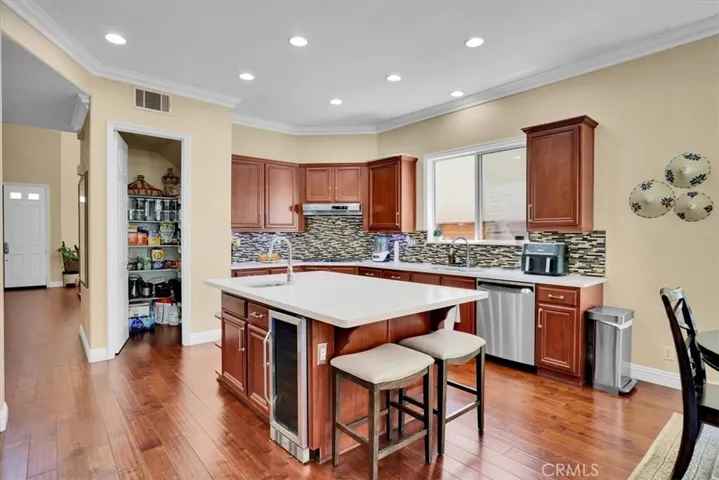 Introducing a fantastic well-maintained high end luxury home located within the exclusive gated community of The Terraces at Bixby Ridge in Signal hill. The beautiful home is meticulously designed to cater to executive living, featuring 4 bedrooms, each with its own full bathroom, including a downstairs bedroom and bathroom. The residence boasts a spacious formal living room and dining room, a family room, a large kitchen with a granite island, wine fridge, in-built speakers throughout the house, tinted front widows & partial primary bedroom windows and stainless-steel appliances, crown molding and wood flooring throughout the home and a three-car garage. Additional amenities include three fireplaces, a loft with a balcony, a covered patio, a high-end outdoor water fountain, and beautifully thought-out landscaped private, secluded backyard and surroundings.