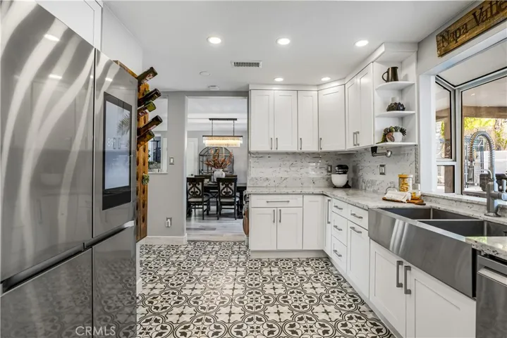 Designed for both comfort and entertaining, the home features a warm, inviting living room with fireplace, a formal dining room with a statement chandelier, and a bright, remodeled kitchen with quartz countertops, stainless steel appliances, recessed lighting, and a bay window overlooking the backyard. Step outside to enjoy the built-in firepit, perfect for gatherings, or relax at the side patio designed to take in Fourth of July fireworks from the comfort of home.