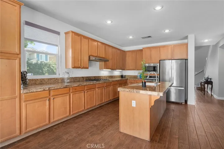 Inside, you’ll find both formal living and dining rooms, ideal for entertaining and special occasions. The heart of the home is the expansive kitchen, featuring a large island, granite countertops, ample cabinetry, and built-in cooktop, oven, and microwave—a dream setup for any home chef. There is even a breakfast nook for enjoyable mornings.