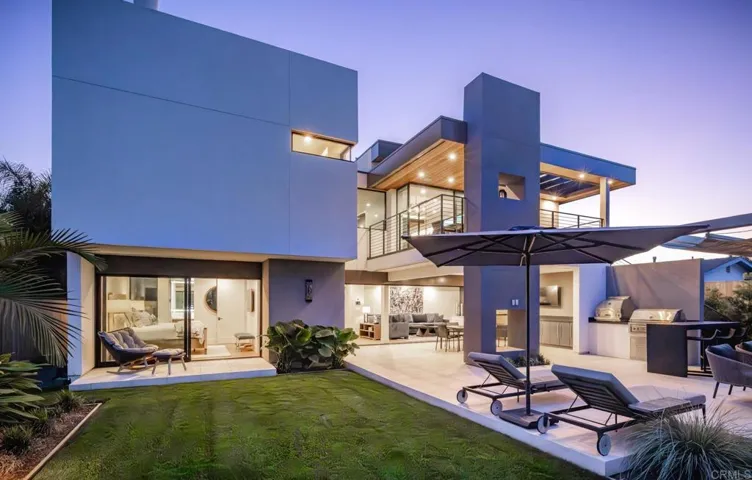 The crown jewel of Terramar, a striking, modern coastal retreat just steps from the sand. From the moment you step inside, the home’s elevated architecture and contemporary palette of blues, creams, and grays set the tone for refined beachside living. Every detail speaks of craftsmanship and cutting-edge luxury. This newly constructed 4 bed, 4.5 bath, 3,925 SF masterpiece was imagined as the tallest home on the street, thoughtfully designed across three levels plus a rooftop deck to fully capture panoramic ocean views. The community of Terramar comes with its own private beach access, The Landing, the biggest bonus for the new owner of this magnificent estate, offering an exclusive way to enjoy the coastal lifestyle just steps away. A sleek Savaria Eclipse Residential Elevator connects every floor, offering effortless access from the private garage to the top level, a true blend of convenience and sophistication. The entry level boasts three impeccably designed bedrooms, three full baths, and a family room that opens seamlessly to the backyard, an entertainer’s dream complete with a custom outdoor kitchen with Lynx pizza oven and 42” grill, bistro island, designer fire pit table, Kannoa Motion Cabana with retractable awning, hot tub, and outdoor shower, all framed by water-conserving landscaping and artistic lighting. The main living space and the heart of the home is located on the top floor to maximize ocean views and includes a showstopping kitchen outfitted with Wolf and Subzero appliances, dual Asko dishwashers, a full-size wine fridge, and striking walnut and white cabinetry. The kitchen flows seamlessly into the dining nook and ocean-facing great room, where doors vanish to reveal a vast deck, your front-row seat to nightly sunsets. Located in its own private wing, the luxurious ocean-view primary suite offers an elevated retreat with a spa-inspired bath, a stylish powder room, and direct access to the rear deck and the outdoor entertaining area below. The lower level includes a finished 4-car garage with EV charging, a private wine cellar with 160+ bottle capacity, and access to smart home systems. Sustainable and smart, the home features owned Enphase solar with monitoring system, water-conserving landscaping, security cameras, Kumo Touch thermostats, myQ garage access, and high-efficiency HVAC systems. A highlighted feature is the complete Control4 system with lighting, Lutron Palladiom Motorized Roller Shades, distributed audio, security, and surround sound integrated into one app. This is more than a home. It’s a statement of lifestyle, where every detail was curated for coastal elegance, smart functionality, and unforgettable entertaining.