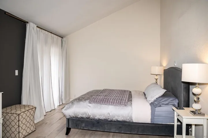 Welcome to your stay in San Diego! The rental period offered is a fixed term for min of 30 days from December 20, 2025 – January 20, 2026 OR June 1, 2026 – August 15, 2026. Enjoy al-fresco dining, or lounging on the patio, complete with plush patio furniture and beautiful plants. Sip your morning coffee and have breakfast at the outdoor marble table under a turquoise umbrella on the patio with a few culinary herbs and container fruit trees. As you step inside, you’ll be greeted by an open and spacious living area with plenty of natural light. The updated kitchen features stainless steel appliances, including dishwasher, white cabinets, gray countertops, and plenty of storage space with additional pantries. The open kitchen leads seamlessly into the dining room, living room, and patio for a great flow! There are two bedrooms, one is a spacious primary with high ceilings, an ensuite bathroom, and two balconies, and the second room is cozy with a luxury sofa bed with upgraded, stylish, and comfortable foam mattress. Gucci Tiger wallpaper imported from Italy adds a creative flare. The guest bathroom is updated with wood detailing and modern touches, such as a wide contemporary white sink and stylish wood vanity. Two stylish desks are conveniently located on both levels for a comfortable work from home option. Other features of this stunning townhome include laundry as well as stylish lights for ambiance. Located in a beautifully landscaped complex complete with pool, hot tub, sauna, and tennis courts. Minutes from USD, centrally located, close to San Diego destinations! The complex is beautifully landscaped and very quiet. You can hear the birds singing in the morning and throughout the day. The neighbors are friendly and it is a lovely community where you can take long walks and exercise outdoors if you like to be active. There is FREE parking on North Rim Court in the complex by the tennis courts, a few minutes walk to the townhome, or you can choose to pay for a parking permit to park anywhere in the complex and closer to the unit. Parking permits are subject to availability for a cost of $40 per month. Included: High speed internet, Netflix, Home Sonos music system. There will be a required professional exit cleaning fee, however professional housekeeping is included once per month at no additional cost to you.
