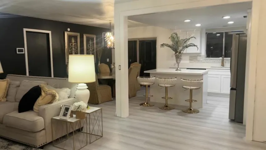 Welome to this beautifully redone ranch style home in Apple Valley Brand new kitchen flooring and bathroom with designer fixtures throughout the home.Outside you will find over 2,000 sq ft of turf the owner made a dog park in the back for there dog and over 25 beautiful canary palm trees…The 3rd bedroom is currently being used as a media room but can easily be converted back into a bedroom.