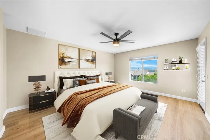 NO MELLO-ROOS TAX – Gorgeous City & Mountain Views – Gated Community. Welcome to Bella Ventana, part of the prestigious Westridge TPC Private Golf Community in Santa Clarita. This stunning 1,960 sq. ft. luxury paired home features a thoughtfully designed layout with elegant finishes and exceptional neighborhood amenities. Step inside and be captivated by hardwood flooring throughout, new laminate flooring upstairs, new ceiling fans, a built-in entertainment center, and a cozy fireplace filled with natural light. The spacious kitchen is an entertainer’s dream, featuring extensive cabinetry, granite countertops, stainless steel appliances, and a brand-new dishwasher. The backyard is equally inviting, with a covered patio perfect for relaxation or entertaining. Upstairs, the primary suite is a true retreat, complete with custom closet organizers, a spa-like bathroom, and a French door leading to a private balcony with breathtaking views of the Santa Clarita Valley, city lights, and surrounding mountains. Additional upgrades include a garage with custom cabinetry and epoxy flooring. Living in Westridge offers two Olympic-size swimming pools and spas, tennis and basketball courts, soon-to-be pickleball courts, a clubhouse for private events, and a park with picnic areas, barbecues, and a playground. Families will appreciate the home’s proximity to three top-rated schools within walking distance and easy access to the I-5 freeway. One of Bella Ventana’s unique benefits is that its HOA includes earthquake insurance, unlike many other communities. This is more than just a home—it’s a lifestyle. Don’t miss the opportunity to own this spectacular property in one of Santa Clarita’s most desirable communities!
